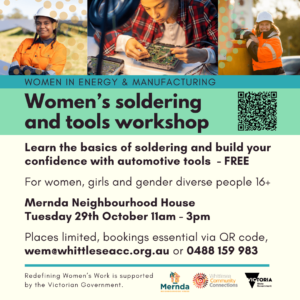 Register using the enquiry form, email wem@whittleseacc.org.au or phone, WhatsApp or SMS 0488 159 983